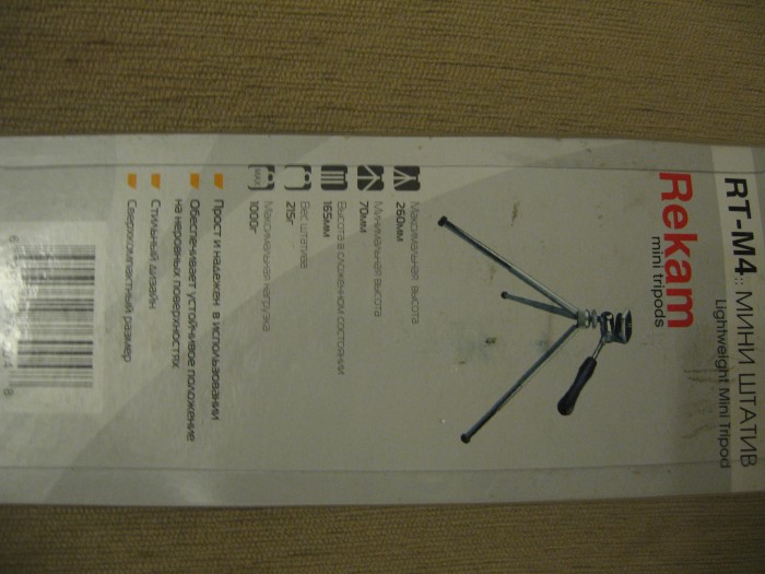 Продам мини-штатив для видеокамеры. Hmax=260мм, Hmin=70мм, Вес=215г, Нагрузка max=1кг. Новый.
